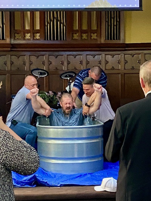 Abundant Life tries to have at least one baptism service a year. During the service, the pastor or an elder speaks briefly about the purposes and meaning of baptism, and then the baptism is performed. At Abundant Life, we practice water baptism, and we fully immerse the person being baptized. Sometimes the pastor baptizes the person by himself, but a parent, spiritual mentor, or another church leader often assists in the act of baptizing.